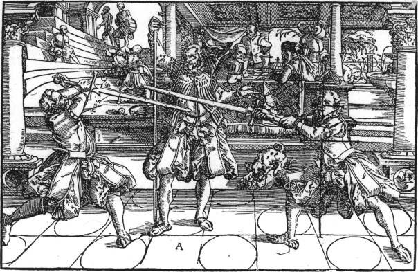 Wiewol die theilung des Mans auß welcher die Blösungen und Leger entstahn, zu und von welcher auch gefochten würdt, eingentlich zu der Mittel oder Handtarbeit gehöret, derowegen auch im inhalt dises Buchs hievon meldung beschehen, jedoch hab ich dieselbe alhie zum ersten nit ohne sondere ursach wollen setzen un beschreiben. Den dieweil im Fechten und in allen stucken und künsten, es am ersten von nöten ist zu wissen, was das sey darumb es zu thun, un derwegen darvon gehandelt würdt, hat sich zum ersten wollen gebüren, hievon bericht zuthun, damit nit erst in dem Mittel oder Handarbeit so solcher Blösungen gedacht würt, von nöten davon zuschreiben, unnd ich im lauff meines schreibens hindersich gezogen wurd.From One's divisions one shall come to understand the Openings and Stances, to and from which one will fence, ongoing to grasping the Middle or Handwork which will be described in the course of this Book, even though at first I was willing to sit and describe this subject alone without any other considerations. Then we move on to examine Fencing in all its components and arts, to be at first known from lessons, then from there to be shown, and then onward to be handled, and you shall at first want to take care to demonstrate how it's properly done, so that not only the Middle or Handwork is attained, but that the Openings shall be minded, from lessons thereon to note taking, and going forward I shall not leave my written lessons behind me to be forgotten.